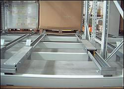 压入式货架系统主要配件由柱片、横梁、轨道、运载台车等构成。 柱片:有两根立柱和横撑、斜撑经专用螺丝连接而成。奥肯立柱的截面有四种规格,以此满足不同的承载要求,立柱上每隔50mm(或75mm )预制水滴型孔来实现与横梁的插接,所以横梁可以以50 mm(或75mm )为单位上下调节货架的层高。 横梁:有两只柱卡与横梁杆焊接在一起。为确保横梁在不正常外力作用下的脱落,特殊设计了横梁与立柱连接的防脱落保险销,以确保使用的安全性。 轨道:特殊制作的矩形轨道,为了满足运载台车与轨道的不断运行,采用了更加耐磨的镀锌处理。 运载台车:根据托盘的尺寸焊接成型,四角装置特殊的四只轮子,必须满足货物的运动承载要求。 |