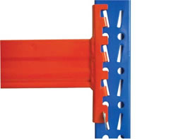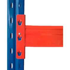 2、插接式组合装配式结构,立柱由进口连冲连轧机组冷轧加工而成,柱片为装配式结构,横梁与立柱之间为插接式连接,且配有自锁能力极强的弹簧卡式安全销,确保在货架使用和叉车操作过程中横梁与立柱连接的安全可靠性和万无一失;